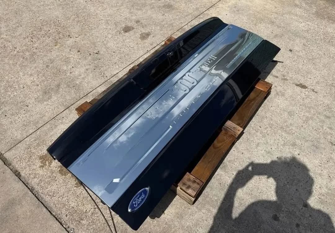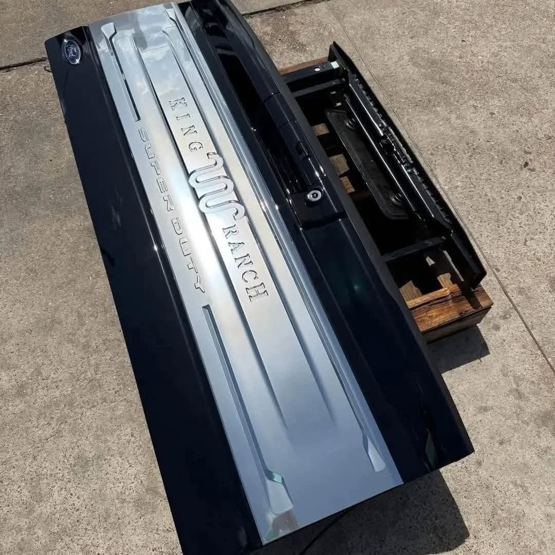 Enhance your Ford Super Duty with the Like New 2017+ F250/F350 OEM King Ranch Tailgate. This premium tailgate comes equipped with cameras and a convenient step, combining functionality with the luxurious style of the King Ranch series.