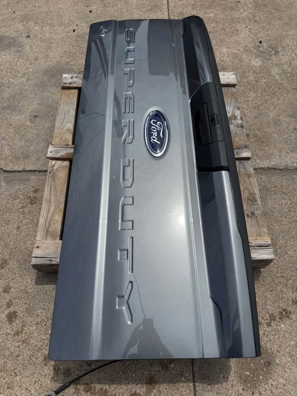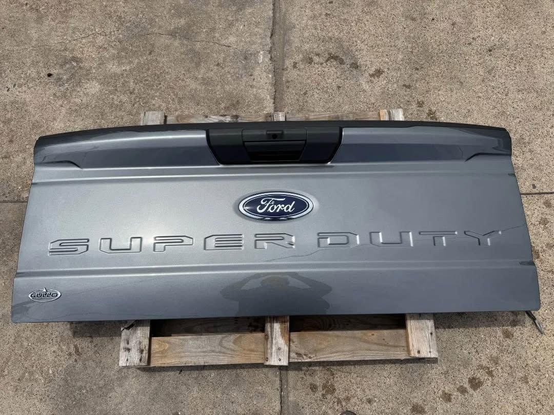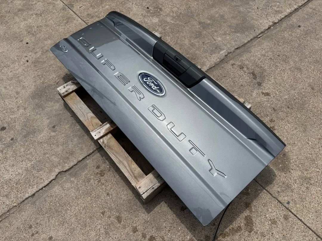 Upgrade your Ford Super Duty with the Like New 2017+ Ford F250/F350/F450 Factory Tailgate in Carbonized Gray. This take-off tailgate features a camera hole for easy installation, combining style with functionality.